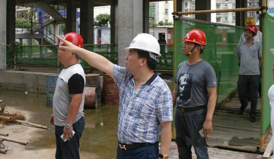 2015年6月13日周六上午,集團(tuán)公司召開(kāi)完周行政工作例會(huì)后,在總經(jīng)理徐遠(yuǎn)征同志的帶領(lǐng)下,市場(chǎng)管理部、工程管理部、招投標(biāo)部、綜合管理部、市政分公司負(fù)責(zé)人第一站來(lái)到蔡甸大拇指廣場(chǎng)檢查施工現(xiàn)場(chǎng)文明施工整改情況,總經(jīng)理首先肯定了上次檢查整改后施工現(xiàn)場(chǎng)明顯改觀(guān),隨后就進(jìn)一步完善圍擋角區(qū)、安全帽佩戴等進(jìn)一步提出了要求;第二站來(lái)到大集張堡小學(xué)施工現(xiàn)場(chǎng),對(duì)墻基坑深度提出了嚴(yán)格按圖紙施工的規(guī)范要求,安排由公司工程管理部對(duì)該施工工地實(shí)行24小時(shí)嚴(yán)格監(jiān)管的做法得到了校方領(lǐng)導(dǎo)的充分肯定。