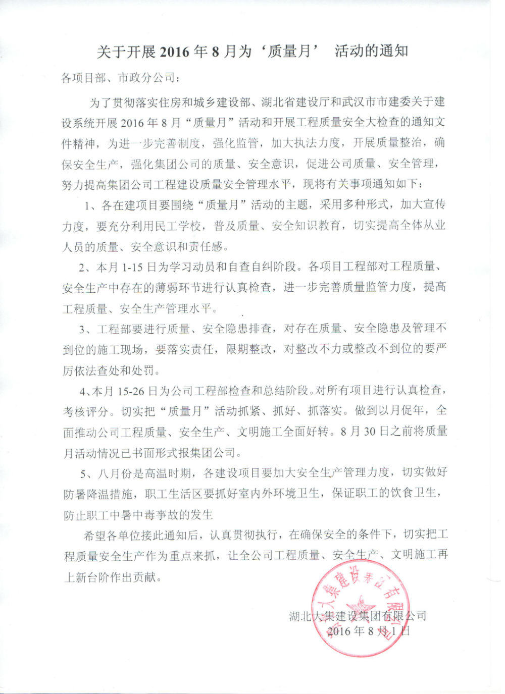 關(guān)于開展2016年8月為“質(zhì)量月”活動的通知