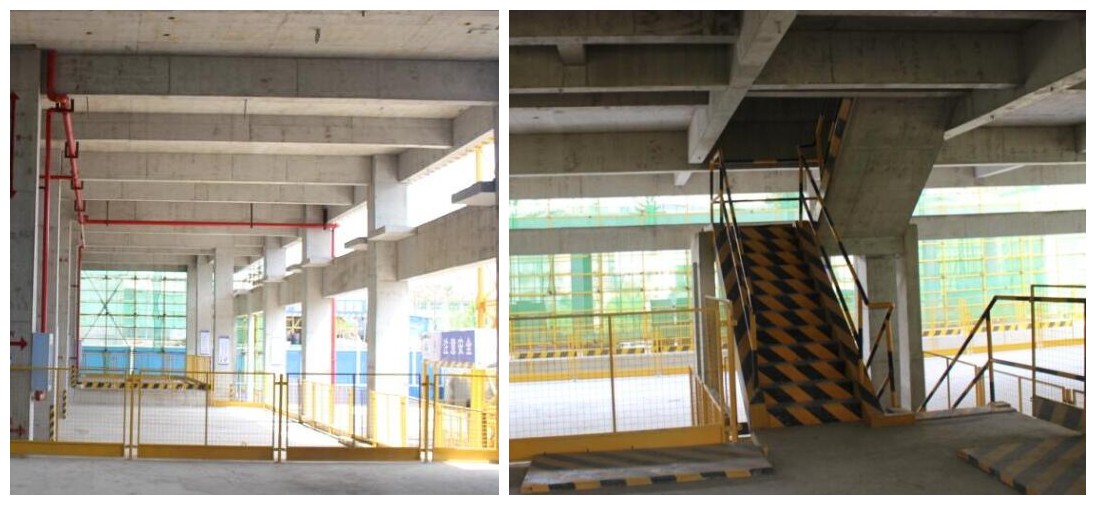 主體結(jié)構(gòu)梁、柱、樓、地面:1、梁柱陰陽角順直、方正;2、模版結(jié)頭平整,無偏模、跑?,F(xiàn)象;3、混凝土表面平整、光滑、五蜂窩麻面,五亂跟現(xiàn)象,感觀度很好;4、樓、地面平整密實(shí),紋路清晰,無高低、凹凸不平現(xiàn)象。