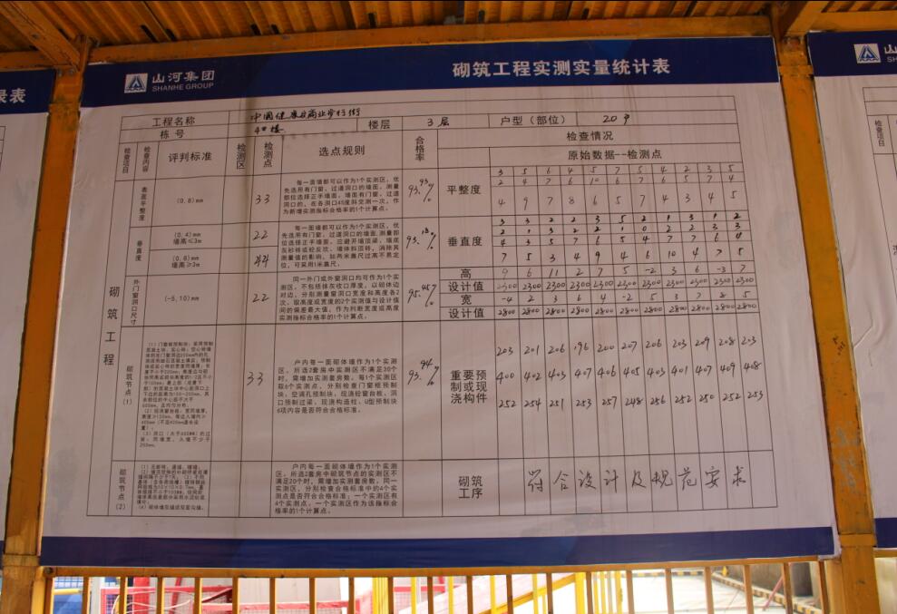 2.成品監(jiān)管展示:定期檢測,實(shí)測實(shí)量數(shù)據(jù)上墻,嚴(yán)格按照標(biāo)準(zhǔn)要求執(zhí)行;