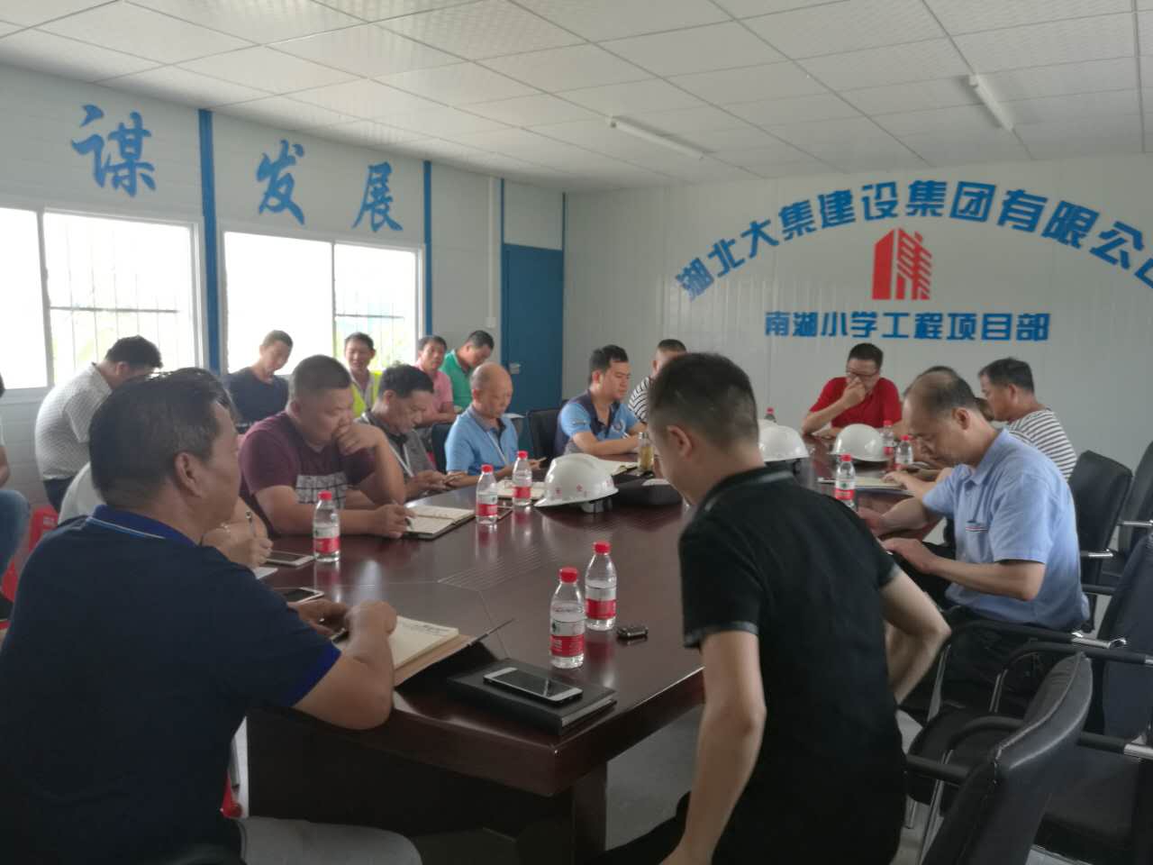 會議開始, 由南湖小學項目施工員介紹了該項目的主要情況及進度,并表達了南湖小學項目創(chuàng)杯爭優(yōu)的決心,確保楚天杯,爭創(chuàng)魯班獎,并對施工工藝細節(jié)和各個操作班組制定了具體規(guī)范和標準。