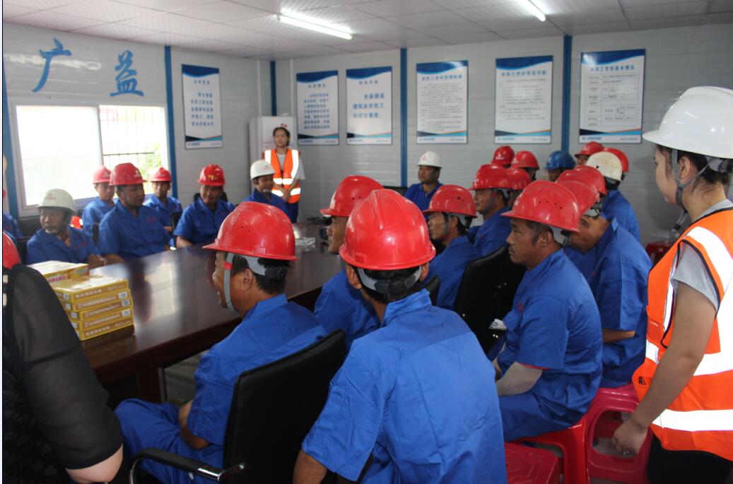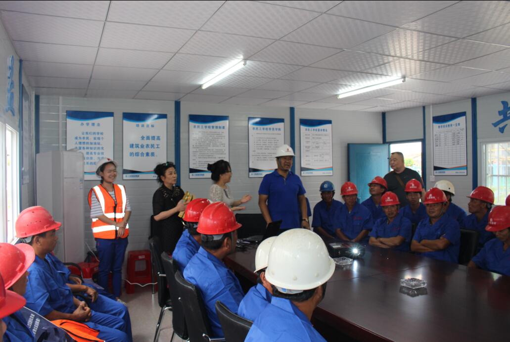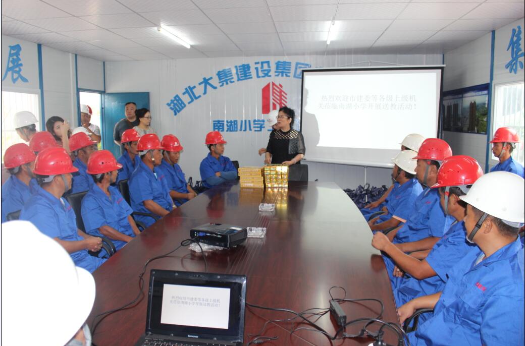 8月30日,市城建委、市人事局、市建筑工程質(zhì)量監(jiān)督站、蔡甸區(qū)監(jiān)管站一行領導蒞臨集團南湖小學項目開展送教活動,現(xiàn)場向工人發(fā)放保溫杯,毛巾、球鞋、收音機等生活用品和文娛用品,并通過有獎問答的形式向現(xiàn)場務工人員進行了生動有趣的安全教育和法律保險知識普及,以增強農(nóng)民工的道德法制意識和安全文明施工意識,更好地適應現(xiàn)代化城市建設的需要!活動現(xiàn)場,兩位老師親切和藹,工人積極踴躍,場面熱烈活絡!