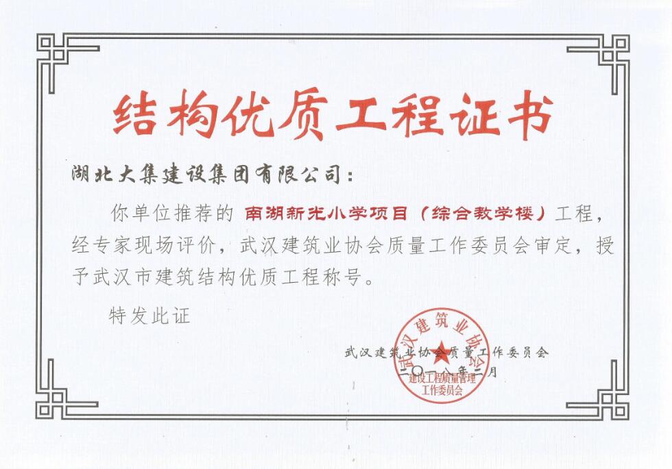 武漢市建筑結(jié)構(gòu)優(yōu)質(zhì)工程證書(shū)