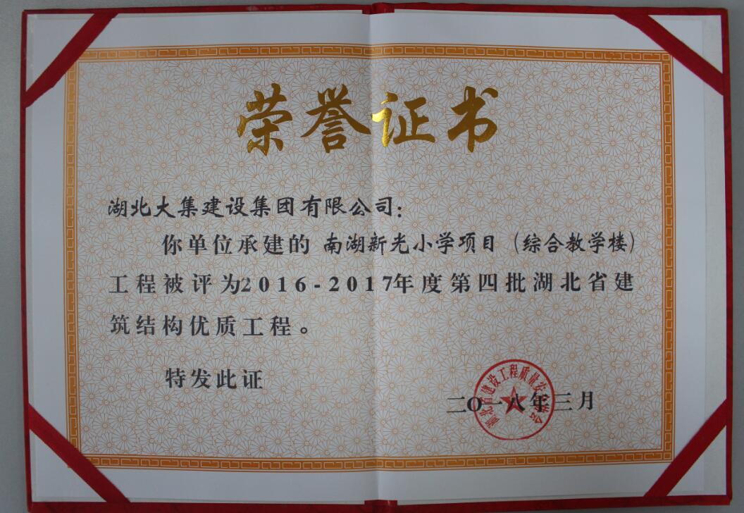湖北省建筑結(jié)構(gòu)優(yōu)質(zhì)工程榮譽(yù)證書(shū)
