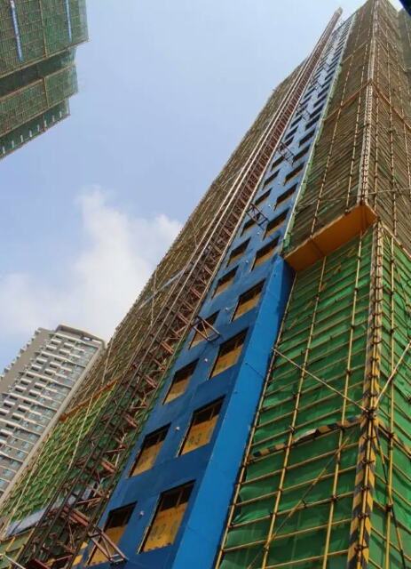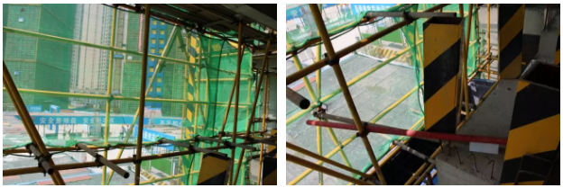 腳手架采用雙連墻桿,鋼管橫平豎直,搭設規(guī)范。