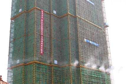 外墻采用噴淋系統(tǒng),起到防塵降塵環(huán)保的作用。