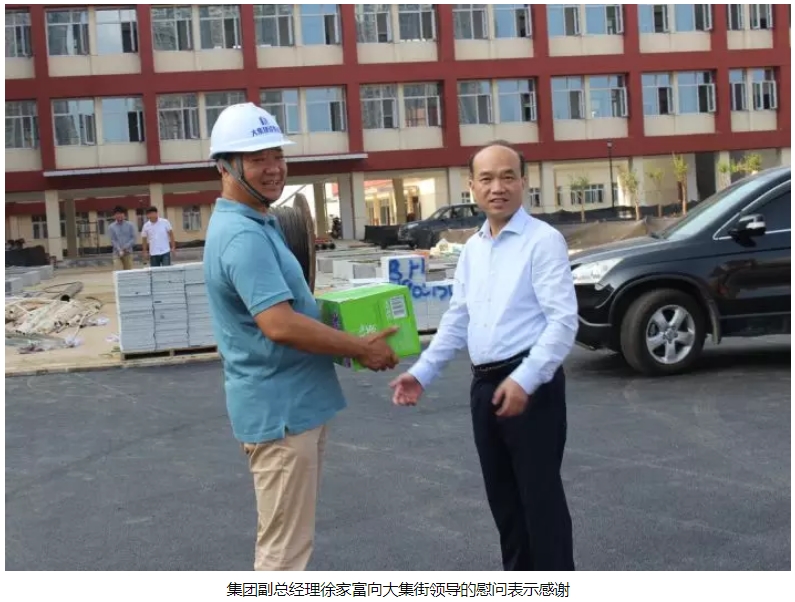 炎炎夏日送清涼,絲絲關懷暖人心。7月24日,蔡甸區(qū)大集街黨工委書記曹克斌、副書記吳永峰,工會副主席劉浩等領導蒞臨南湖(新光)小學項目開展送清涼慰問活動,為項目上奮戰(zhàn)在高溫一線的工作人員送來綠茶、礦泉水、十滴水、人丹等防暑降溫物資,集團副總經(jīng)理徐家富、工程部部長周偉陪同慰問并向各位領導詳細講解了項目建設情況。