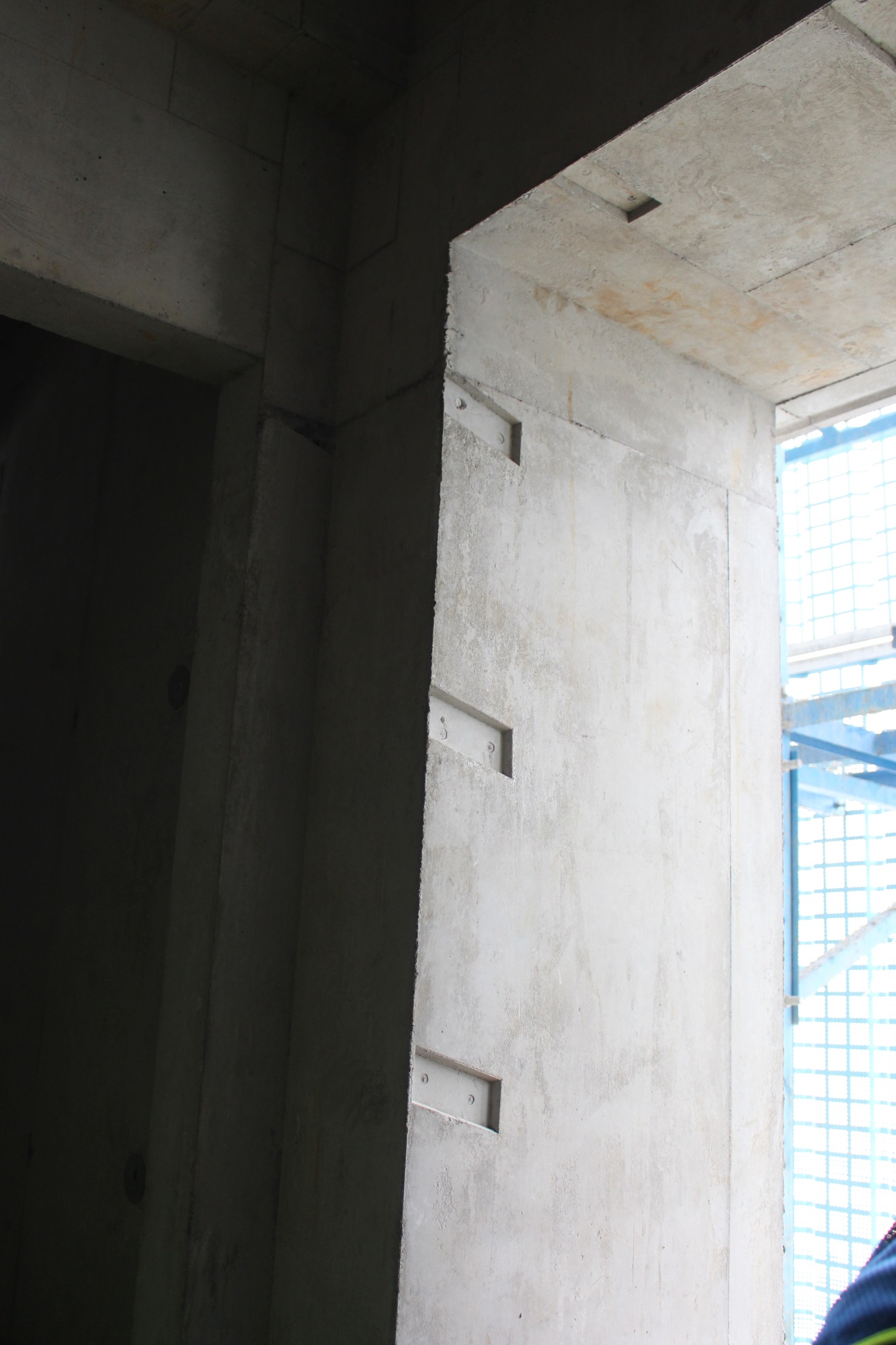 墻面混凝土施工采用鋁模壓槽,便于管線安裝,效果好,質(zhì)量?jī)?yōu)