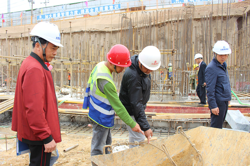 在項目部負責人的陪同下,徐副總一行深入項目施工現場,分別對9#樓地下室止水鋼板施工、16#樓地下室底板鋼筋綁扎等進行了嚴格的檢查,并對檢查中發(fā)現的問題提出了整改意見,要求項目部嚴格按照標準要求整改到位。