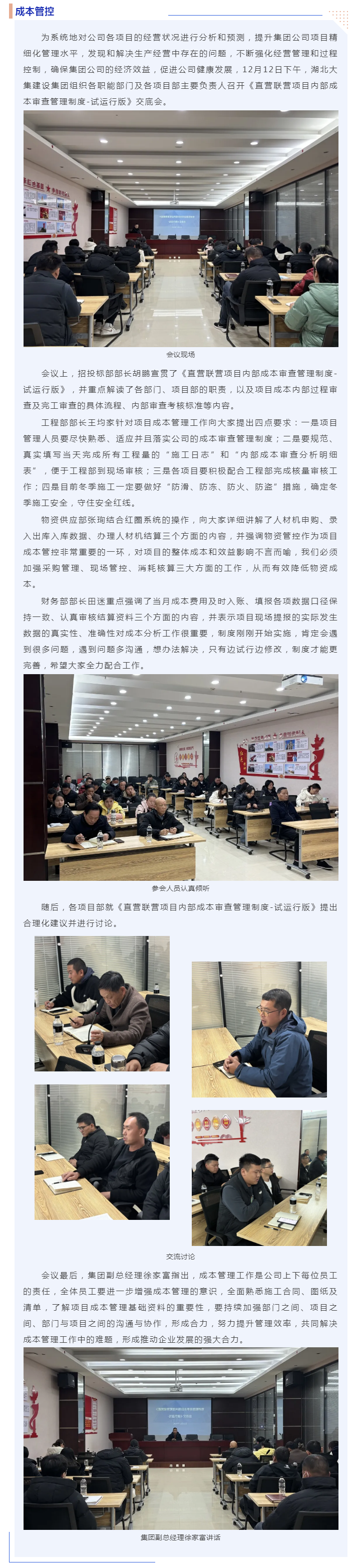 集團公司召開項目內(nèi)部成本審查管理制度交底會