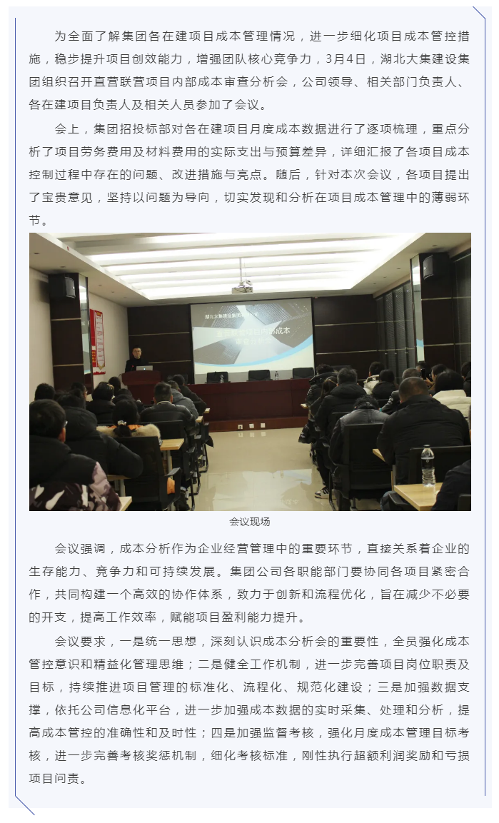 成本管控|湖北大集建設(shè)集團(tuán)召開(kāi)項(xiàng)目?jī)?nèi)部成本審查分析會(huì)