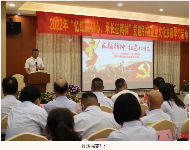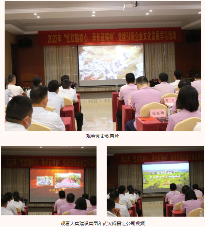 為慶祝建黨101周年,進(jìn)一步推進(jìn)黨史學(xué)習(xí)教育,增強(qiáng)隊(duì)伍凝聚力、向心力與戰(zhàn)斗力,湖北大集建設(shè)集團(tuán)聯(lián)合武漢閱景匯公司于6月16日上午共同開展2022年“憶紅船初心,承長征精神”黨建引領(lǐng)企業(yè)文化發(fā)展學(xué)習(xí)活動(dòng),兩家公司的全體黨員、入黨積極分子以及中高層領(lǐng)導(dǎo)、優(yōu)秀骨干員工參加了學(xué)習(xí),會(huì)議由湖北大集建設(shè)集團(tuán)黨支部書記徐遠(yuǎn)征主持。