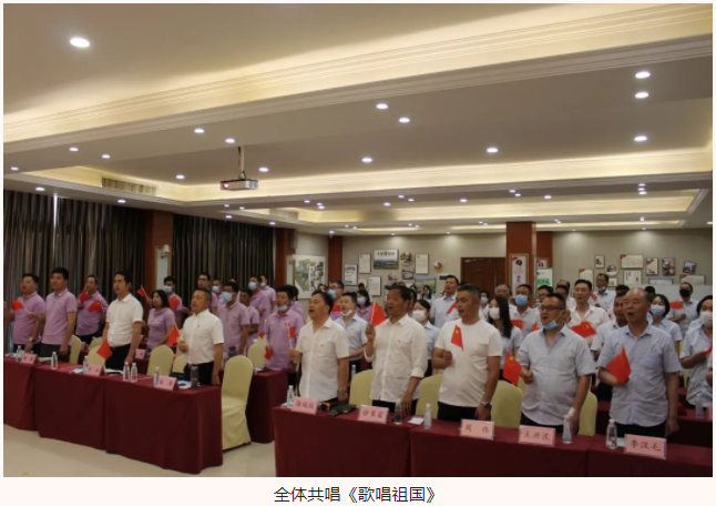 “五星紅旗迎風(fēng)飄揚(yáng),勝利歌聲多么響亮;歌唱我們親愛的祖國,從今走向繁榮富強(qiáng)……”會(huì)議最后,全體起立,共唱《歌唱祖國》,用嘹亮的歌聲表達(dá)了對黨和祖國的無限熱愛和深深祝福。