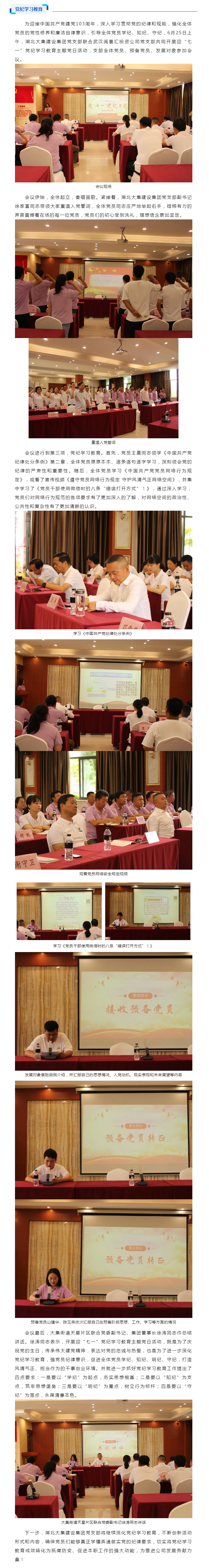 學(xué)黨紀(jì) 明規(guī)矩 守初心 促發(fā)展——湖北大集建設(shè)集團(tuán)開展迎“七一”黨紀(jì)學(xué)習(xí)教育主題黨日活動