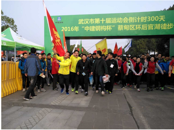 12月10日上午9點整,2016“中建鋼構(gòu)杯”蔡甸區(qū)環(huán)后官湖徒步大賽在山靈水秀的白蓮湖廣場鳴槍開賽。3856名參賽人員從這里出發(fā),在風(fēng)景如畫的濕地公園,領(lǐng)略沿途的自然風(fēng)光,感受非一般清新的武漢。奔馳這樣遠離都市喧囂的綠色賽道上,不僅是一場完美的人生體驗,更是一次絕佳的身體放松之旅。湖北大集建設(shè)集團在董事長徐濤的帶領(lǐng)下以最飽滿的熱情迎接這場賽事!