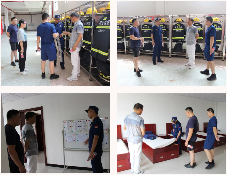 大集消防救援站教導(dǎo)員盧志帶著大家參觀了消防裝備庫及消防官兵備勤室,參觀中,集團公司副總經(jīng)理徐家富與盧教導(dǎo)員進行了深入交流,詢問官兵們的日常生活及工作情況,并向高溫下堅持訓(xùn)練、持續(xù)工作的他們表示敬意。